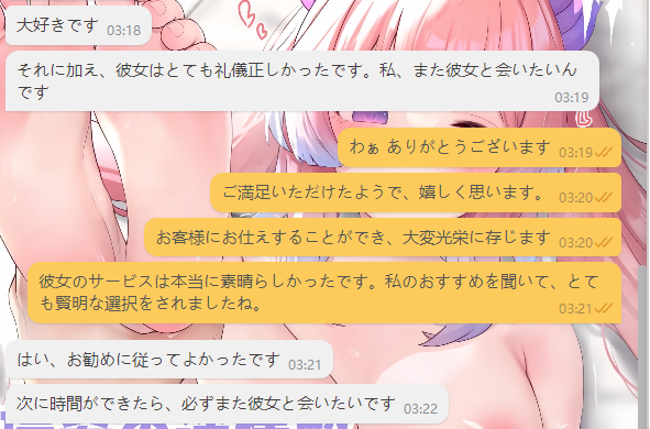 小姐のサービス態度は本当に客人の好みに合いますね とても彼女感があります